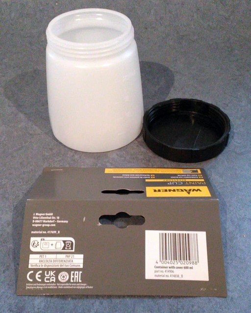 Pistolenbecher 600ml m.Deckel Nr.414906 für Wagner Pistolen W95, 140P, 180P, 450SE W550, 640, 650, 660 |